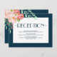 Tarjeta de recepción de boda elegante y sofisticada que presenta rosas rosadas pintadas con acuarela sobre un fondo navy. Puedes personalizar el color de fondo. Selecciona una forma de corte die-cut o papel texturizado para un toque extra de lujo. Combina y combina elementos de esta colección para un conjunto de invitaciones elegante y sin fisuras.