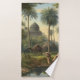 Pintura de época de una escena botánica con cuatro dromedarios frente a un palacio indio cerca de un río