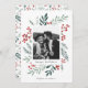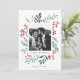 Esta tarjeta de vacaciones completamente personalizable de 1- foto incluye botánicos de invierno de color acuático pintados a mano que enmarcan la foto. Viene con un patrón de coincidencia en la parte trasera y en la sala para escribir un mensaje personalizado. Este diseño forma parte de una colección. Obra de arte original de la diseñadora Nicole Barreto. Comprar tarjetas de vacaciones y mucho más en www.zazzle.com/store/nbpaperco