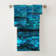 Esta es una abstracción azul, verde azulada y turquesa con venas negras, hecha por mí manualmente en la técnica de verter acrílico y similar a corrientes de agua con gotas.