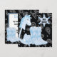 Fondo de bandana de lunares negra adorable con botas vaqueras azules, sombrero de vaquero, insignia de sheriff y pony de palo invitaciones de baby shower de vaquero para niño. Agregue sus detalles en la parte delantera y/o trasera agregando los detalles del evento, estilo de fuente, tamaño y color de la fuente y redacción.