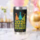 Playful party hats, confetti, and streamers surround the year “2026,” bringing a fun and cheerful vibe.