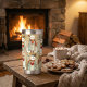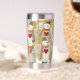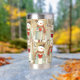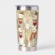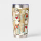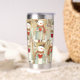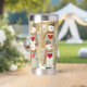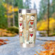 Insulated tumbler featuring a whimsical pattern with snowmen carrying warm red hearts. The pretty earth tones make this tumbler a welcome addition to your space. Also a nice gift for Valentine's Day!
