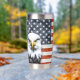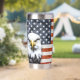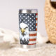 Botella Aislada Águila Rústica sobre la bandera estadounidense