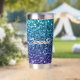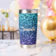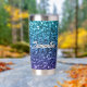 Un purpurina falso enciende un nombre personalizado Tumbler aislado. Personaliza con tu nombre. Los hermosos purpurinas brillantes, glamorosos y oscuros, brillantes y brillantes. ¡Foto de chispas cian y azul oscuro no es purpurina real!