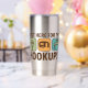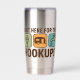 ¡Mantén tu bebida como te gusta mientras demuestras tu humor de campamento! Este tumbler de acero inoxidable presenta la frase estrafalaria "Justo aquí para los enganches" - una necesidad para los entusiastas del RV y los habituales del camping.