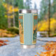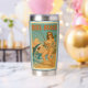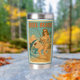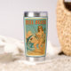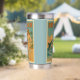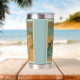 ¡Esta playa es muy salada! La chica pin-up inspirada en el vintage atrevido maneja con confianza la caña de pescar mientras su gran captura, un tiburón luchador, salta fuera del agua. La escena se completa con palmeras, un auto antiguo y una torre de salvavidas en el fondo. Esta divertida versión con giro descarado del arte clásico de póster retro te hará reír. Este divertido vaso azul costero está aislado para mantener tu bebida caliente o fría. Perfecto para la playa, la pesca o hacer recados.