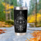 With the symbols of both Sacred Geometry and Astrology along with a gothic moth this tumbler would fit perfectly in either a gothic or a dark academia decor setting.