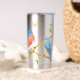 Los azulejos del este solo se encuentran en Norteamérica. Aunque los colores de la hembra no son tan brillantes como los del macho, ambos muestran un fascinante azul y naranja rojizo en la garganta y el pecho con un vientre blanco. El fondo, la imagen y el texto se pueden personalizar. Arte original de W.B.