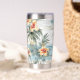 A Beachy Tropical Hibiscus Floral Stainless Steel Insulated Tumbler Drinking Glass