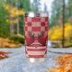 “Your Phrase Here” and “Harvested By Your Name Here” wrap this stainless steel tumbler in patch-day charm. A row of ripe strawberries pops against a red-pink checkered background, with editable text that lets you make it your own. Perfect for berry lovers, jam makers, and garden-to-go sippers.