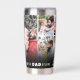 Personalized Best Dad Ever 8 Photo Collage Travel Mug. This heartfelt travel mug is perfect for celebrating your dad’s role as “Best Dad Ever.” Featuring a collage of eight cherished family photos, this mug captures special memories for a touching reminder wherever he goes. At the bottom, “Best Dad Ever” appears on each side over a sleek black gradient with heart accents near the text, adding a sentimental touch. You can personalize it further by adding kids' names with a small heart beside each one, creating a unique keepsake that brings warmth to every sip on the go. Ideal for Father’s Day, birthdays, Christmas, or any occasion, this travel mug combines a modern look with meaningful family mementos, perfect for a dad who values both style and treasured moments.