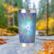 Una flor de fantasía abstracta y moderna con tonos azules y violetas. Diseñar para su tumbler térmico y más.