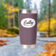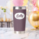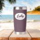 Regale a su boda dama de honor con este moderno y personalizado tumbler termal de acero inoxidable con su nombre en escritura estilizada en un diseño ovalado blanco. El color de fondo y el guión son un color de berenjena. Personalice su vaso térmico editando y reemplazando el nombre de la dama de honor por el nombre deseado. Disponible en muchos de los populares esquemas de color de las bodas de novias.