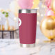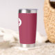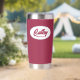 Regale a su boda dama de honor con este moderno y personalizado tumbler termal de acero inoxidable con su nombre en escritura estilizada en un diseño ovalado blanco. El color de fondo y el guión son un color rojo de vino. Personalice su vaso térmico editando y reemplazando el nombre de la dama de honor por el nombre deseado. Disponible en muchos de los populares esquemas de color de las bodas de novias.
