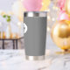 Regale a su boda dama de honor con este moderno y personalizado tumbler termal de acero inoxidable con su nombre en escritura estilizada en un diseño ovalado blanco. El color de fondo y la escritura es un color gris oscuro y de moda. Personalice su vaso térmico editando y reemplazando el nombre de la dama de honor por el nombre deseado. Disponible en muchos de los populares esquemas de color de las bodas de novias.