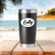 Regale a sus bodas damas de honor este moderno y personalizado tumbler de acero inoxidable con su propio nombre en escritura negra y estilizada dentro de un diseño ovalado y blanco. Personalice su vaso térmico editando y reemplazando el nombre por el nombre de su dama de honor. Seleccione su estilo de color del tumbler. Disponible en muchos de los populares esquemas de color de las bodas de novias.