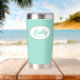 Regale a su boda dama de honor con este moderno y personalizado tumbler termal de acero inoxidable con su nombre en escritura estilizada en un diseño ovalado blanco. El color de fondo y el guión son un color de fondo marino. Personalice su vaso térmico editando y reemplazando el nombre de la dama de honor por el nombre deseado. Disponible en muchos de los populares esquemas de color de las bodas de novias.