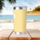 Regale a su boda dama de honor con este moderno y personalizado tumbler termal de acero inoxidable con su nombre en escritura estilizada en un diseño ovalado blanco. El color de fondo y la escritura es un color amarillo mantequilla. Personalice su vaso térmico editando y reemplazando el nombre de la dama de honor por el nombre deseado. Disponible en muchos de los populares esquemas de color de las bodas de novias.