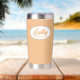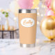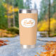 Regale a su boda dama de honor con este moderno y personalizado tumbler termal de acero inoxidable con su nombre en escritura estilizada en un diseño ovalado blanco. El color de fondo y el guión son un color melocotón. Personalice su vaso térmico editando y reemplazando el nombre de la dama de honor por el nombre deseado. Disponible en muchos de los populares esquemas de color de las bodas de novias.