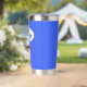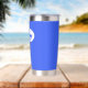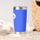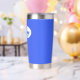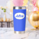 Regale a su boda groomsman con este tumbler termal de acero inoxidable, moderno y personalizado, con su nombre en escritura estilizada en un diseño ovalado blanco. El fondo y la escritura es un color azul real de moda. Personalice su vaso termal editando y reemplazando el nombre del groomsman por el nombre deseado.