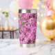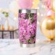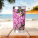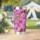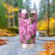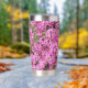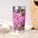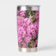 Un moderno vaso de agua de acero inoxidable y termal para sus bebidas calientes o frías que incluye una imagen de foto envolvente de bonito, pequeñas flores Daphne rosas. ¡Un bonito diseño floral!