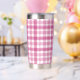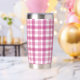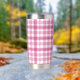 Sube el impulso matutino o vespertino con este tumbler rosa bonito. El tumbler es aislado y duradero, así que puedes mantener tus bebidas calientes o frías y lucir lindo haciéndolo. Disponible en varios colores.