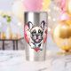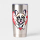 El Bulldog francés es encantador, con un fondo en forma de corazón. Rojo y negro, y blanco. Muy bien y detallado.