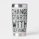 Comida tu día con feroz motivación. Este tumbler termal aislado presenta las potentes palabras "El cambio empieza con la resistencia" colocadas sobre un sutil motivo de engranajes, perfecto para el café caliente o la rebelión de la fraternidad. Manténganse inspirados y cafeinados tanto si estás en la protesta como si estás impulsando tus objetivos. #ChangeStartWithDefiance #ThermalTumbler #MotivationalDrinkware