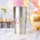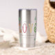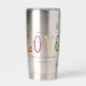 A modern and neatly designed Christmas Personalized Water Bottle Insulated Tumbler with the word LOVE in colourful and adorable serif typography style, customizable and perfect for sending the warmest wishes to your loved ones in the jolly season.