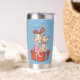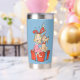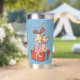 This absolutely darling illustration captures a moment of pure holiday joy! Cindy Lou Who, dressed sweetly in pink with her big red bow, is sitting happily atop a large, colorful Christmas present (red with a blue ribbon). Beside her sits her loyal friend, Max the Dog, looking cheerful and sporting his single reindeer antler! This heartwarming graphic perfectly celebrates friendship and the sweet excitement of Christmas morning.