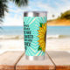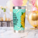 Botella Aislada Cita inspiradora y girasol dibujado a mano