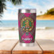 Insignia de escudo del Clan Crawford rodeada por una correa y hebilla sobre el fondo del tartán. Texto personalizado en ambos lados.