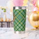 Botella Aislada Clan Currie Rooster Escudo sobre Tartán