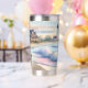 This dreamy coastal artwork captures a tranquil moment at the shoreline, where a woman strolls barefoot with her dog, the soft pastel tones of the setting sun casting a warm glow on the sand and sea. A charming beach house sits nestled among windswept grasses, its porch inviting and timeless, while a stately lighthouse watches over the horizon. Gentle waves roll in with watercolor softness, and hints of blush pink, misty blue, and sun-kissed gold give the scene an ethereal, nostalgic quality. The entire composition evokes slow living, serenity, and the quiet magic of coastal escapes. With a relaxed, coastal cottagecore vibe and a soft, painterly style, this piece blends warmth and whimsy in perfect harmony. AI generated artwork.