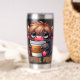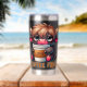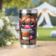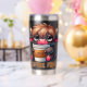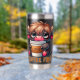 A funny and sarcastic design showcases a cute highland cow holding a to-go coffee cup brimming with coffee. With big blue eyes and a sleepy, tired expression, the cow rests its head on the cup's lid, its fluffy black fur adding to the charm. The colorful text reads, "Coffee first." This playful design is available on a wide variety of products, making perfect gifts for coffee lovers.