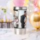Crea tu propio vaso de boda aislado para fotos con 7 de tus fotos favoritas, tus nombres y fecha de boda. La plantilla de la foto está preparada para crear un collage de fotos con una foto principal de fondo, superpuesta con las fotos restantes en un montaje de zigzags verticales por los lados. Las imágenes se muestran en formato horizontal con marcos negros. Perfecto regalo para recién casados, fiesta de bodas, regalos de aniversario..