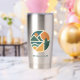 Admire el espíritu de la aventura al aire libre con esta imagen redonda inspirada en la naturaleza. Presenta una audaz silueta de montaña, un sol radiante y líneas depuradas en un emblema circular. Una gran elección para los amantes de la naturaleza. Personalice y agregue un nombre o texto.