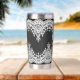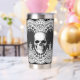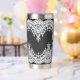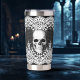 Este termo gótico con su diseño de cráneo y encaje blanco es una hermosa adición a cualquier hogar gótico.