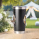 Create your own custom photo insulated tumbler. This tumbler cup features two of your favorite pictures in a circle shaped watercolor brush stroke frame and personalized text for any occasion. A great gift for family and friends or your own photo memory keepsake.