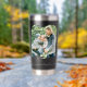 Create your own custom photo insulated tumbler. This tumbler cup features two of your favorite pictures in a square shaped watercolor brush stroke frame and personalized text for any occasion. A great gift for family and friends or your own photo memory keepsake.