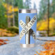 Este tumbler con un signo de ballesta en un poste de madera de un cruce pasivo de ferrocarriles es un buen punto para llevarse por los equipos de trenes junto con un buen lugar para acampar, caminar, viajar u otras actividades. Este artículo también es genial para regalar durante todo el año.