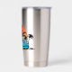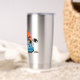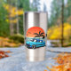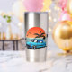 Paseo por la playa en un crucero azul vintage al atardecer con una botella aislada para mantener las bebidas calientes o frías.