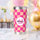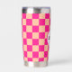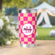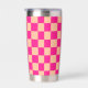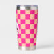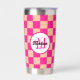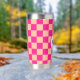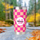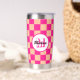 Monograma aislado de tumbler geométrico retro de melocotón rosa caliente. Patrón retro geométrico controlado Botella de agua. Un regalo práctico para una mujer activa. Patrón cuadrado geométrico retro de Guay. Melocotón de tejas vintage y damero moderno rosado caliente.