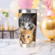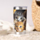 Tumbler térmico con gatitos lindos envueltos cálidamente en una manta. Ideal para los amantes del café o del chocolate caliente.