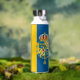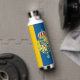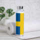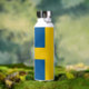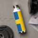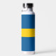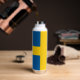 Botella aislada de vacío: elegante botella sueca con bandera sueca patriótica, escudo de armas - amor a mi país, viajes de invierno, bebidas calientes de oficina, patriotas nacionales / hincha deportivo