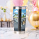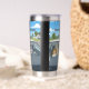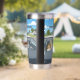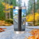 Hit the road with a smile! This playful water bottle features a cartoon image of my sheltie & her border collie friend heading out on a road trip.