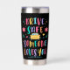 Warm reminder message with colorful hand lettering on a dark background. A gentle and emotional phrase that encourages safe driving and shows care, love, and connection for family, friends, and loved ones.