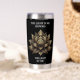 Crea un oasis de paz para ti mismo con este alto tumbler, que presenta un diseño generado por IA de una flor de loto dorado con la bendición (personalizable), "la luz en mí honra la luz en ti". El reverso muestra un diseño idéntico. El Día Internacional del Yoga se celebra el 21 de junio. Diseño © W.H. Sim. Ver más en zazzle.com/word2art
