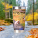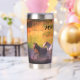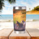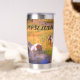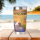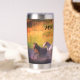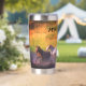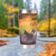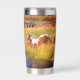 Tumbler de acero inoxidable térmico que puede personalizarse con el nombre. El diseño muestra una variedad de caballos que se deslizan en el río en un día soleado.